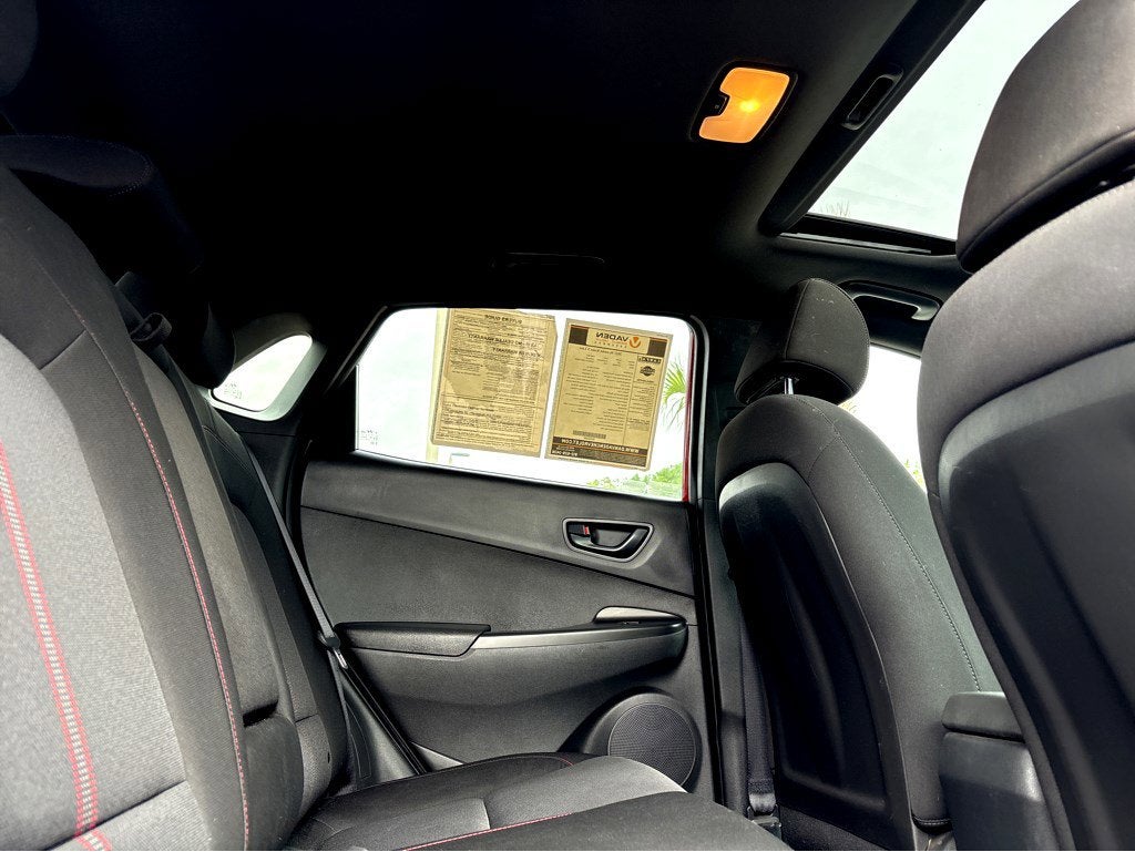 Recent Arrival! Clean CARFAX.Vaden is pleased to offer this Pulse Red 2022 Hyundai Kona N Line with Black Cloth... Beautifully equipped with Tech Package (Electric Parking Brake, High Beam Assist, Hyundai Highway Driving Assist 1, LED Headlights, LED Taillights, Option Group 03, Power Sunroof, Radio: Harman Kardon Premium Audio System, and Smart Cruise Control w/Stop & Go), 3.174 Axle Ratio, 4-Wheel Disc Brakes, 6 Speakers, ABS brakes, Air Conditioning, Alloy wheels, AM/FM radio: SiriusXM, Apple CarPlay & Android Auto, Automatic temperature control, Brake assist, Bumpers: body-color, Cargo Tray, Carpeted Floor Mats, Delay-off headlights, Driver door bin, Driver vanity mirror, Dual front impact airbags, Dual front side impact airbags, Electronic Stability Control, Emergency communication system: Blue Link Connected Car Service (3-year complimentary subscription), Exterior Parking Camera Rear, First Aid Kit, Four wheel independent suspension, Front anti-roll bar, Front Bucket Seats, Front Center Armrest, Front reading lights, Fully automatic headlights, Heated door mirrors, Heated Front Bucket Seats, Heated front seats, Illuminated entry, Leather Shift Knob, Leather steering wheel, Low tire pressure warning, Occupant sensing airbag, Overhead airbag, Overhead console, Panic alarm, Passenger door bin, Passenger vanity mirror, Power door mirrors, Power driver seat, Power steering, Power windows, Radio: AM/FM/HD Radio/SiriusXM Audio System, Rear anti-roll bar, Rear Bumper Applique, Rear seat center armrest, Rear window defroster, Rear window wiper, Remote keyless entry, Security system, Speed control, Speed-sensing steering, Split folding rear seat, Spoiler, Sport Cloth Seat Trim, Steering wheel mounted audio controls, Tachometer, Telescoping steering wheel, Tilt steering wheel, Traction control, Trip computer, Turn signal indicator mirrors, Variably intermittent wipers, Wheel Locks, and Wheels: 18 x 7.5J Alloy!What exactly is the Vaden Way? I think it's best described as a culture bent on treating others with respect, being transparent in how we do business and dedicating ourselves to greater causes like Education and Literacy within our local communities. I hope you'll consider Vaden Automotive when making your next vehicle purchase or choosing where to schedule service and maintenance. Know that when you do, you'll experience firsthand 'The Vaden Way' and forever be part of the Vaden Family. Please visit us at www.danvadenchevrolet.com online, or call us at 912-461-4137.