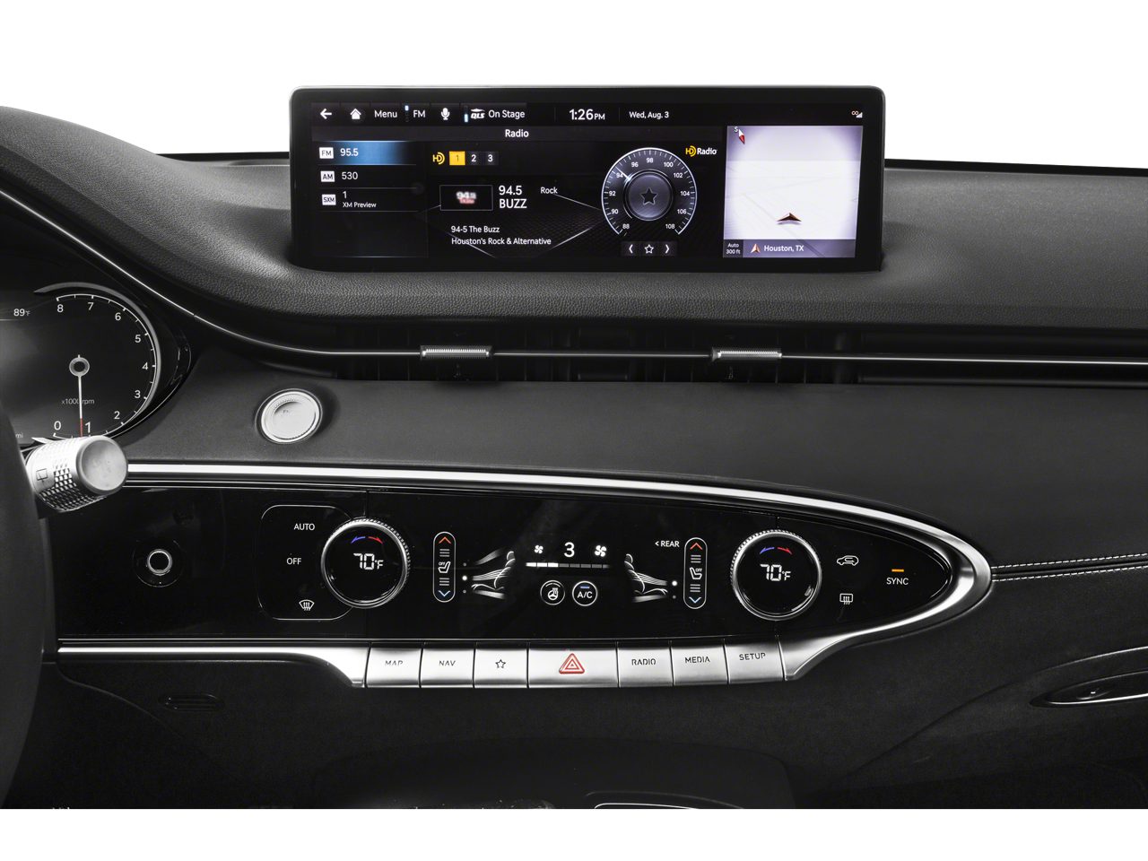 - Radio: 14.5" Navigation System w/AM/FM/HD Radio -inc: SiriusXM radio w/90-day trial subscription (N/A in AK or HI), Android Auto and Apple CarPlay, Genesis Connected Services, Bluetooth® hands-free phone & audio streaming system, premium audio w/9 speakers, WiFi hotspot, internal amplifier and USB port